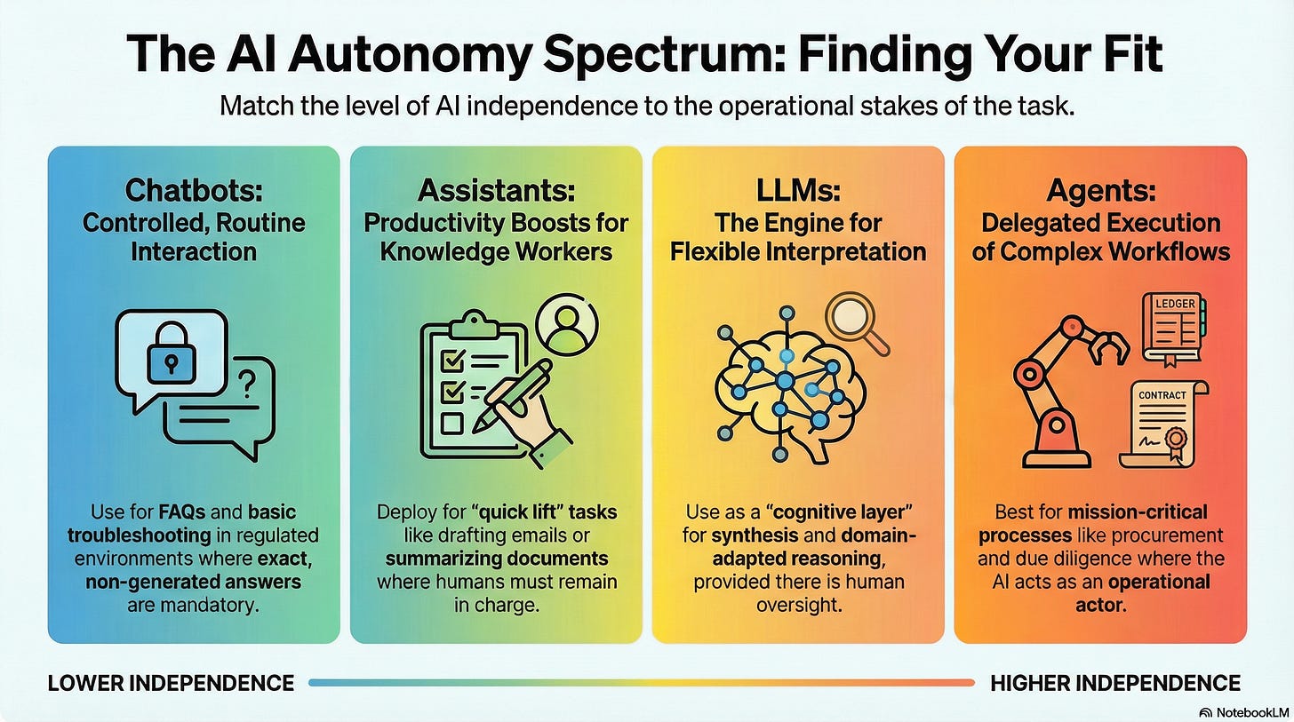 On the other hand, the practical takeaway is simple: the right question is not, “Should we adopt AI?” But Which level of autonomy fits the work, the risk, and the organizational maturity?”