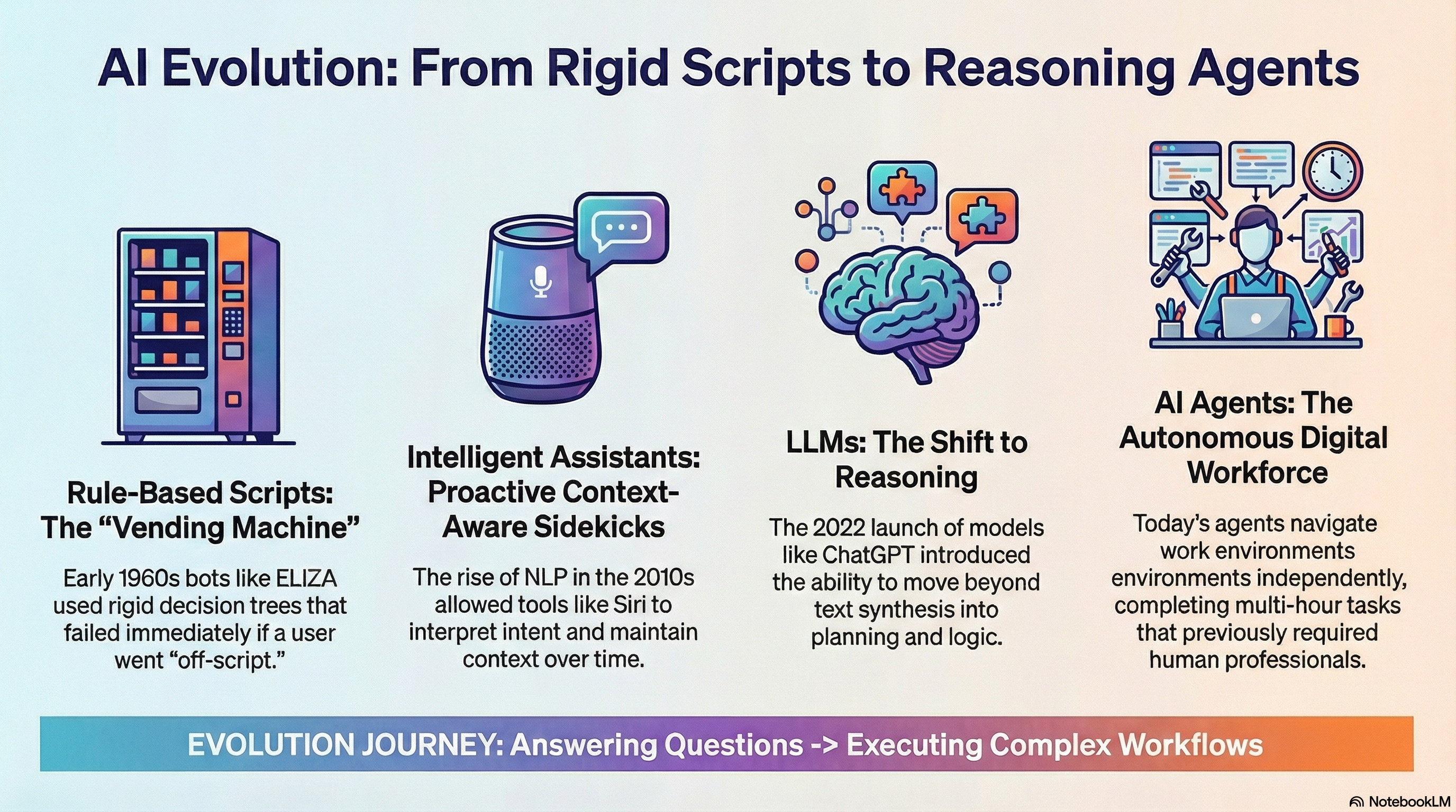 We are moving from rigid scripts that only worked inside narrow boundaries to systems that can interpret, plan, and increasingly act with a degree of autonomy. The real shift is not technological hype; it is organizational gravity.